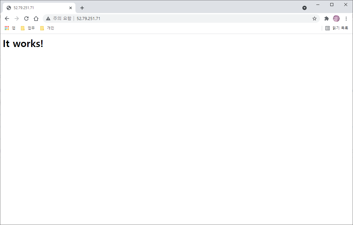 docker run -d --name apache-alpine -p 80:80 public.ecr.aws/s1v1h3u2/apache-alpine:1.1아래와 같이 정상적으로 컨테이너가 실행 중인지 확인한 뒤 80 포트를 통해 웹 접속을 해봅니다.