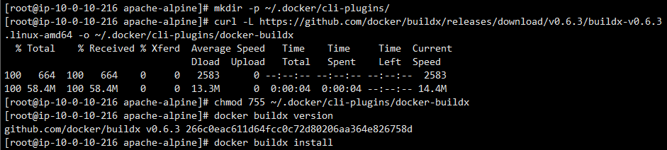 먼저 공식 가이드에 있는 아래 방법으로 Docker buildx를 다운로드하여 설치합니다.