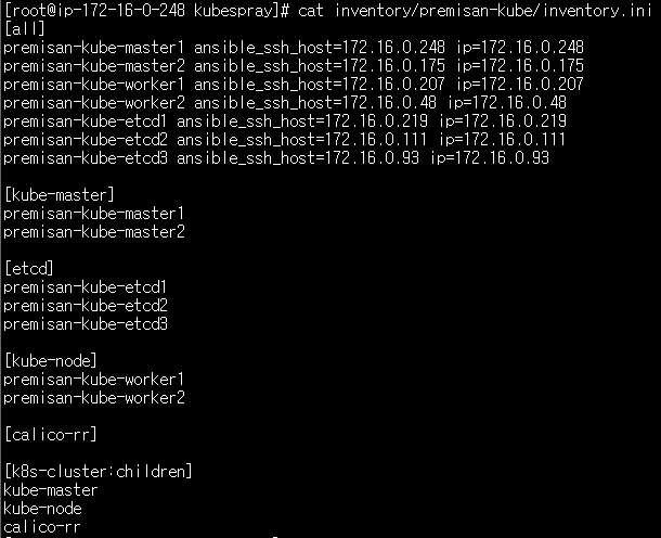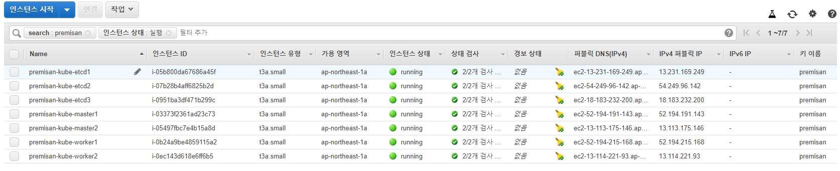 위에서부터 순서대로 마스터노드 2개, 워커노드 2개, etcd 노드 3개의 아이피주소입니다.