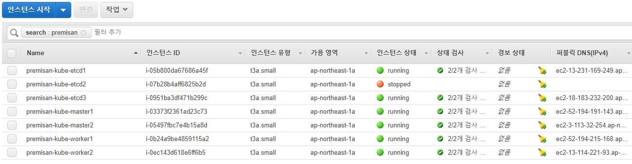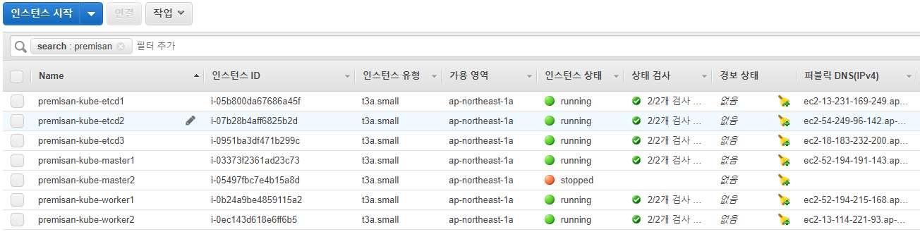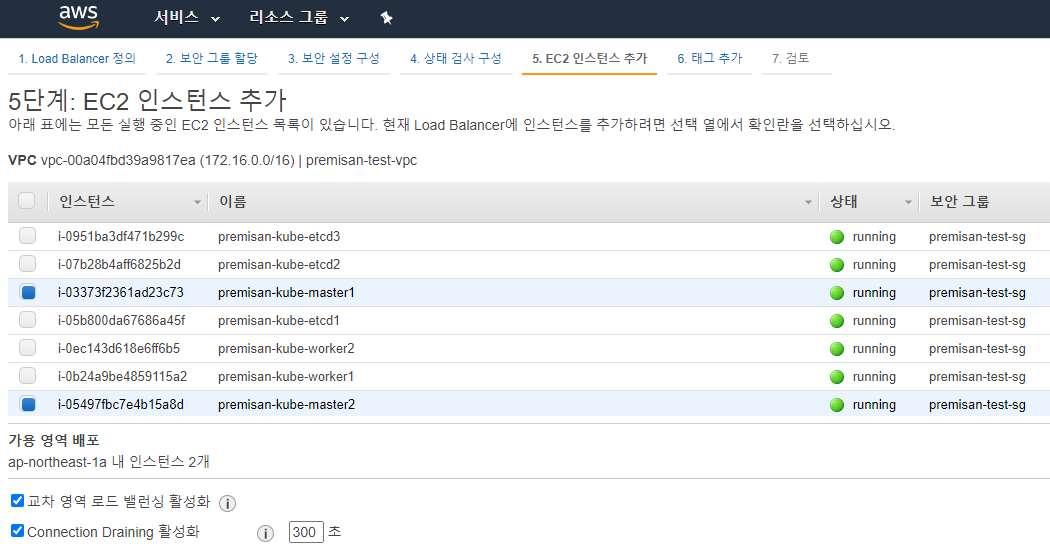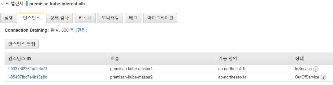 마스터노드는 현재 2개로 구성되어 있으며, AWS internal CLB를 통해 트래픽을 분산하고 있습니다. 마스터노드 중 1개를 다운시켜 장애 상황을 가정하고 고가용성이 유지되는지 확인해봅니다.