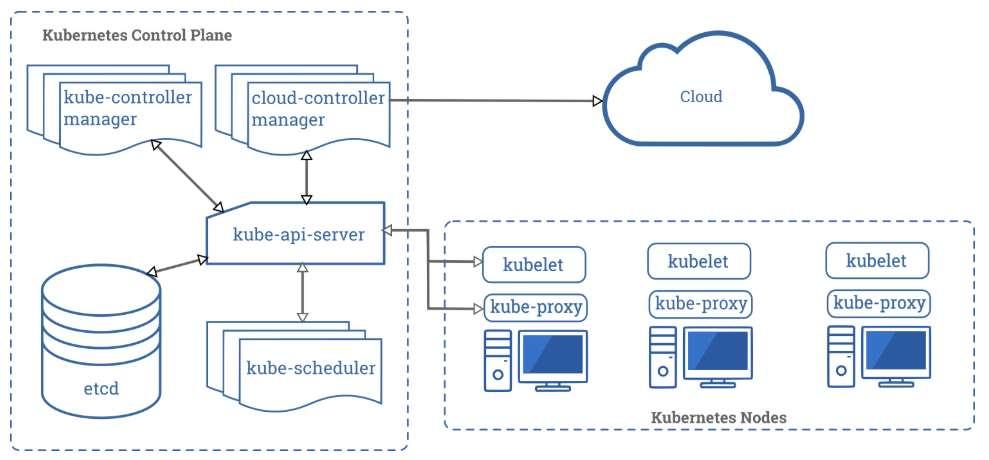 지난 학습 자료를 통해 도커와 쿠버네티스, 그리고 관리형 쿠버네티스 서비스인 AWS EKS 등에 대해 알아보았습니다. 또 업로드해드린 자료를 통해 직접 쿠버네티스 클러스터를 구성해보신 분들도 계셨는데요. 지난 자료에 업로드해드린 쿠버네티스 클러스터는 모두 클러스터를 생성하는 가장 기본적인 방법인 kubeadm을 통한 방법이었습니다. 아래는 쿠버네티스의 컴포넌트 구성도인데요. 기억이 나실지 모르겠습니다.