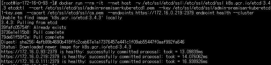etcd 클러스터의 상태가 모두 healthy 로 확인됩니다.