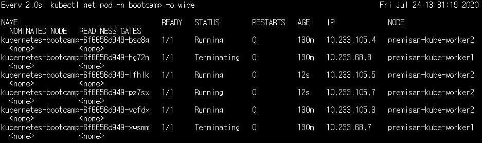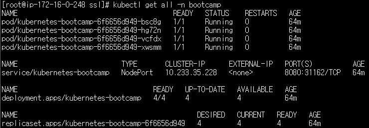 kubectl scale deploy kubernetes-bootcamp --replicas=4 -n bootcamp