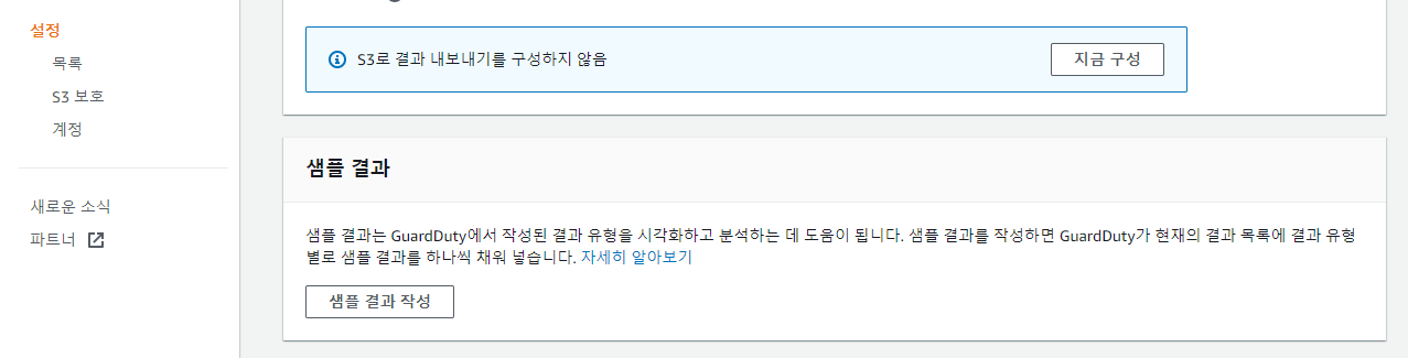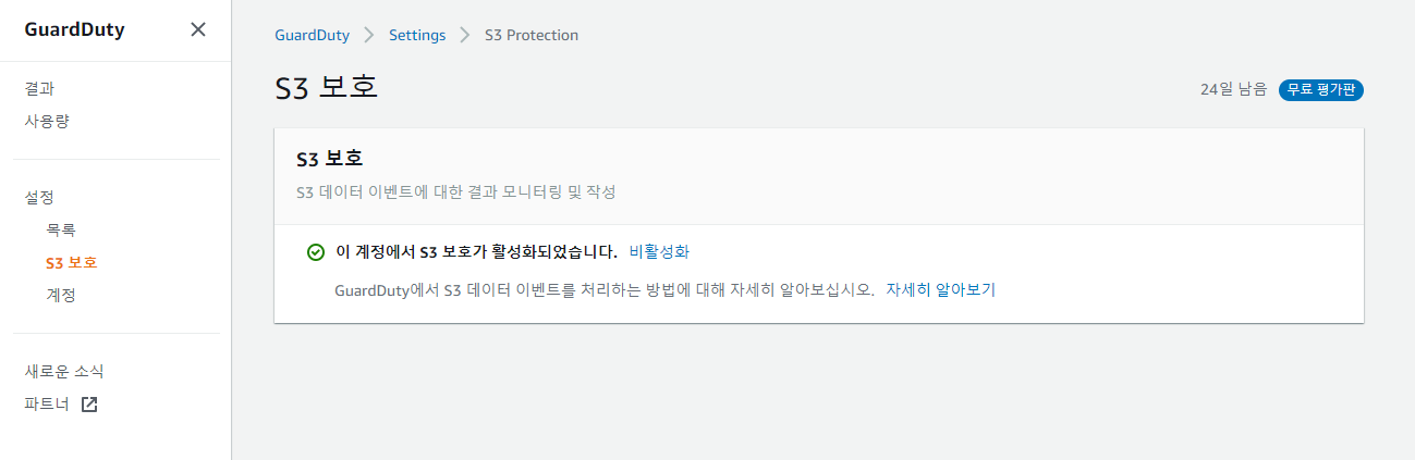 S3 보호 메뉴에서는 S3에 대한 보호를 활성화할지 비활성화할지 설정이 가능합니다.