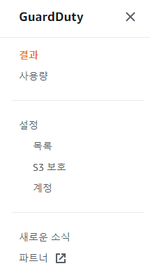 GuardDuty 서비스의 메뉴는 아래와 같이 구성되어 있습니다.
