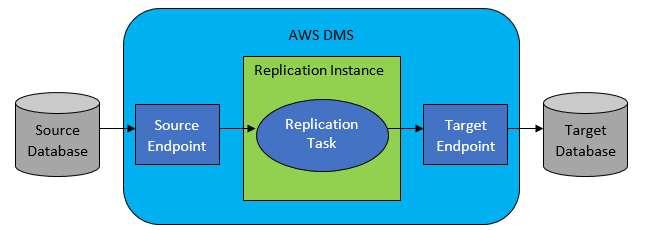 Database Migration Service는 온프레미스 DB 간, 혹은 온프레미스 DB-AWS DB 간 데이터베이스를 마이그레이션할 수 있는 서비스입니다. RDBMS(MySQL, Oracle 등), NoSQL 데이터베이스 등 다양한 데이터베이스 유형을 지원합니다. DMS의 작동 방식은 아래와 같이 원본 데이터베이스와 대상 데이터베이스를 각각 엔드포인트로 설정하고 양쪽 엔드포인트 사이에 구성된 복제 인스턴스가 소스 엔드포인트로부터 타겟 엔드포인트로 데이터 복제를 수행합니다.