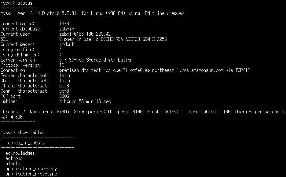 또한 테스트 서버의 자빅스 설정을 수정하여 RDS를 연동 후 접속 해봅니다.