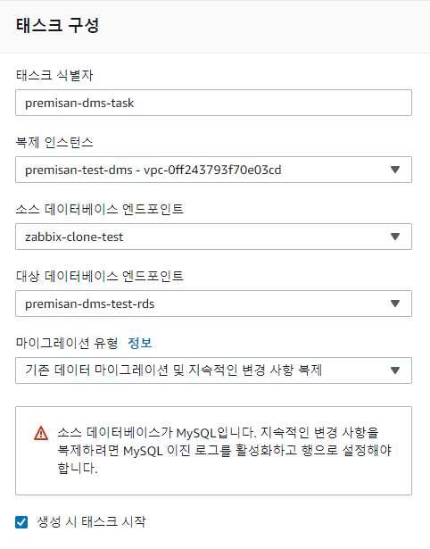 6) 데이터베이스 마이그레이션 태스크(작업) 구성