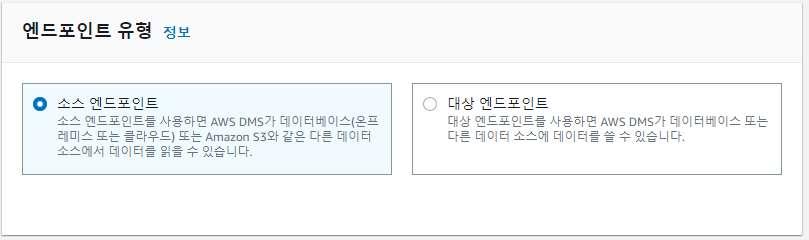 데이터를 복제할 원본 데이터베이스의 정보를 소스 엔드포인트 유형으로 구성합니다.