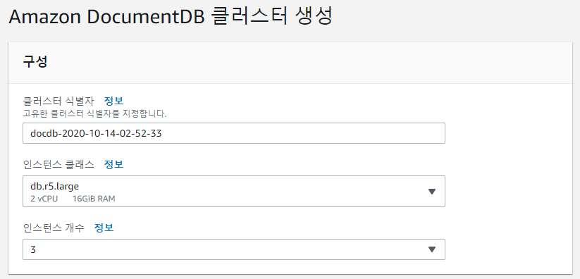 AWS DocumentDB 클러스터 생성