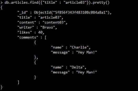 테스트 데이터를 입력한 뒤, find 매소드를 이용하여 저장된 데이터를 확인해봅니다.