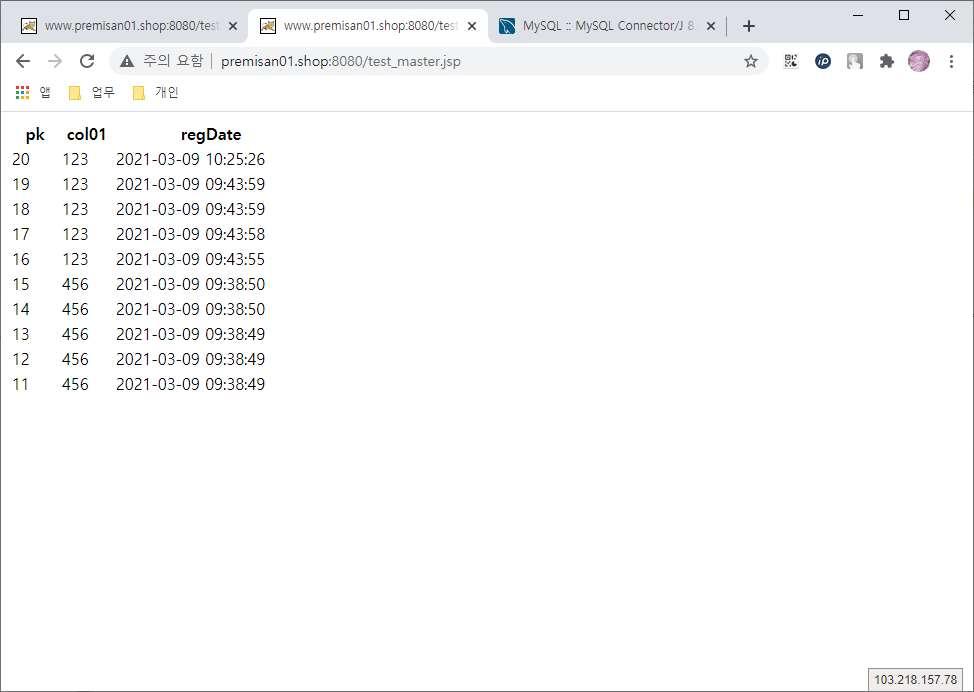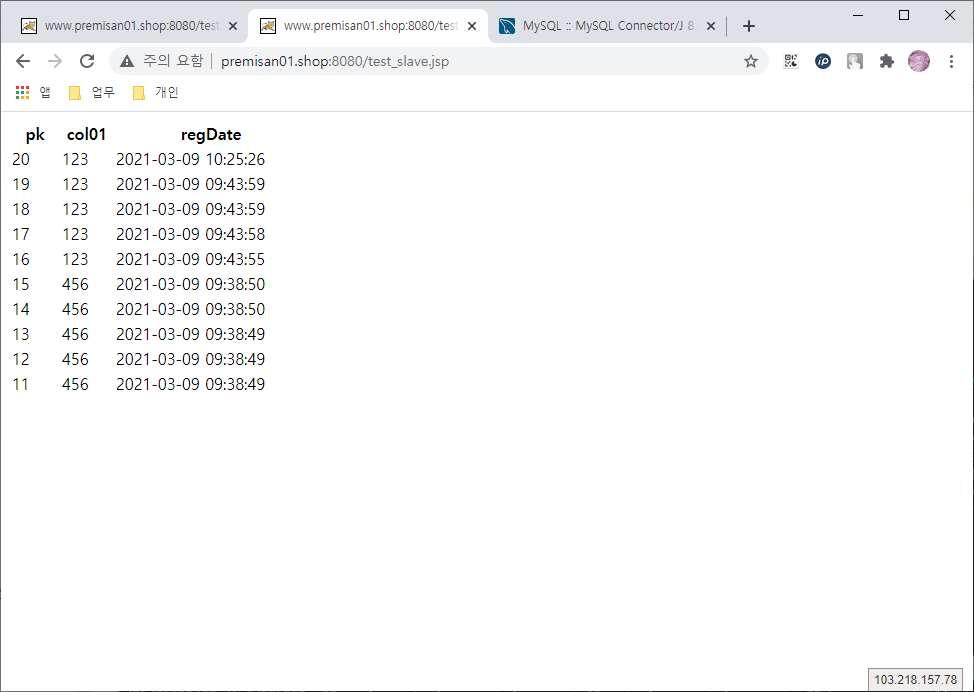 먼저 conn.setReadOnly(false); 값으로 설정한 뒤, 웹페이지에 접속하여 마스터 DB로 쿼리하는지 확인합니다.