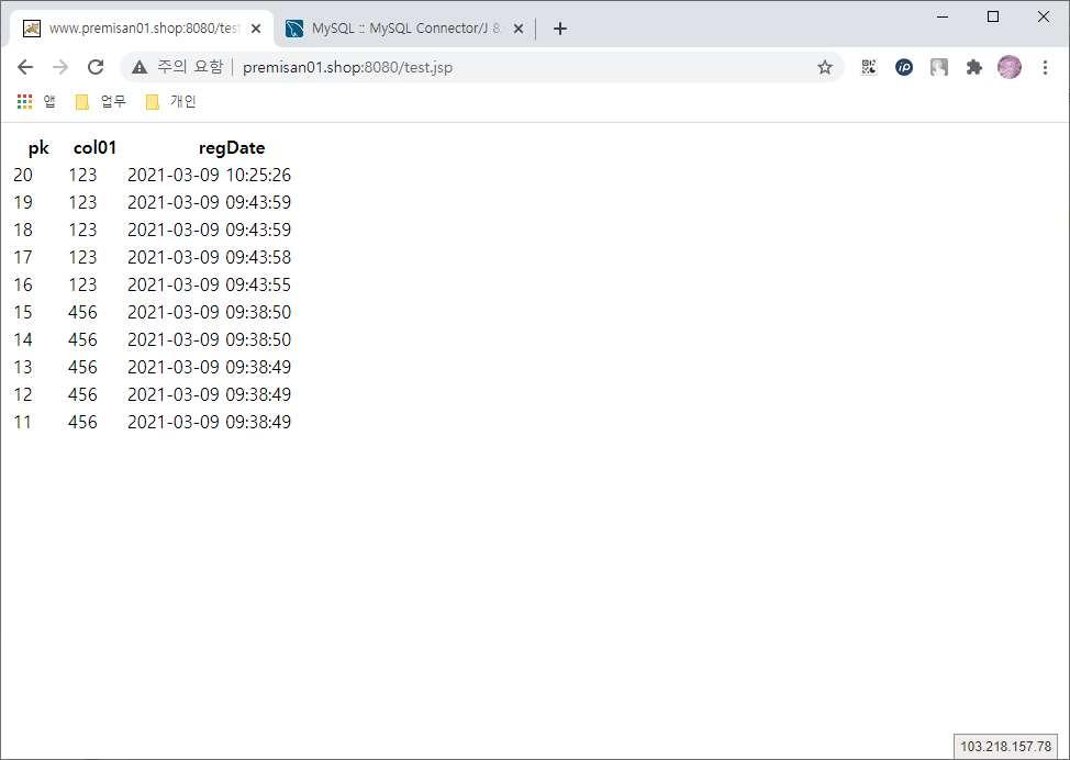 원본 소스를 통해 웹 접속 시 아래와 같이 select 결과를 보여주며,