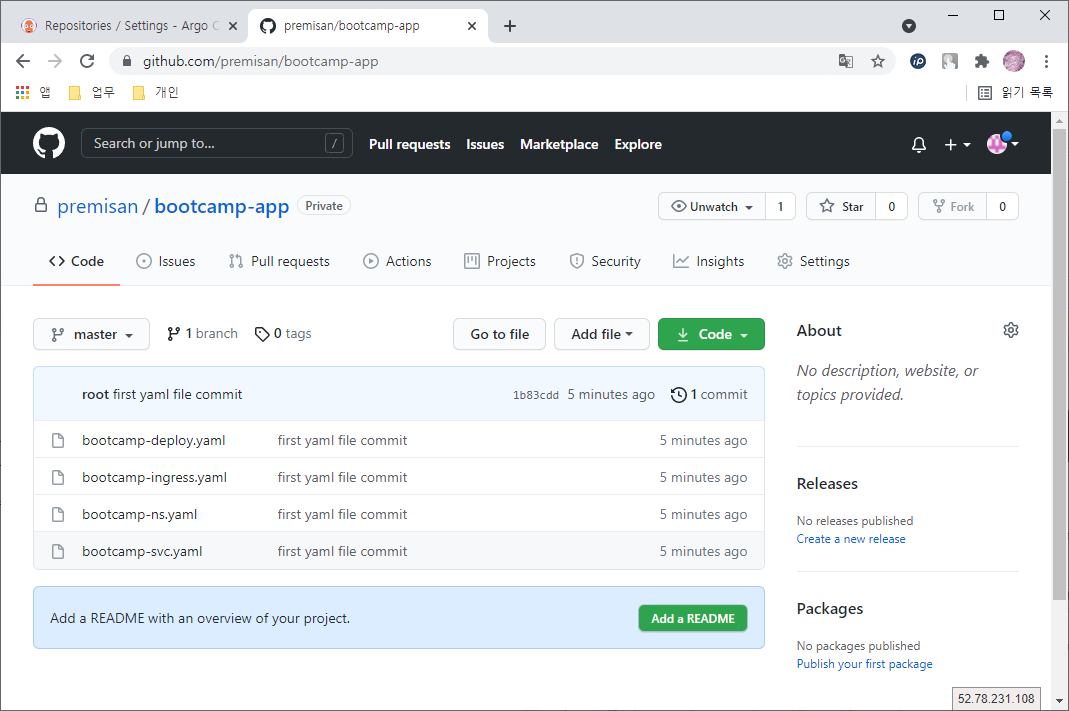 정상적으로 yaml 파일이 푸쉬되면 아래와 같이 파일들이 보여집니다.