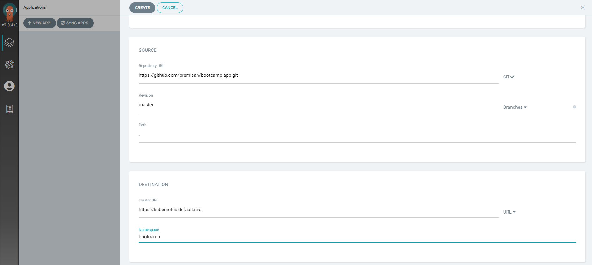 마지막으로 namespace는 앱을 배포할 쿠버네티스의 네임스페이스를 설정하는 값으로 bootcamp 로 입력해주겠습니다.