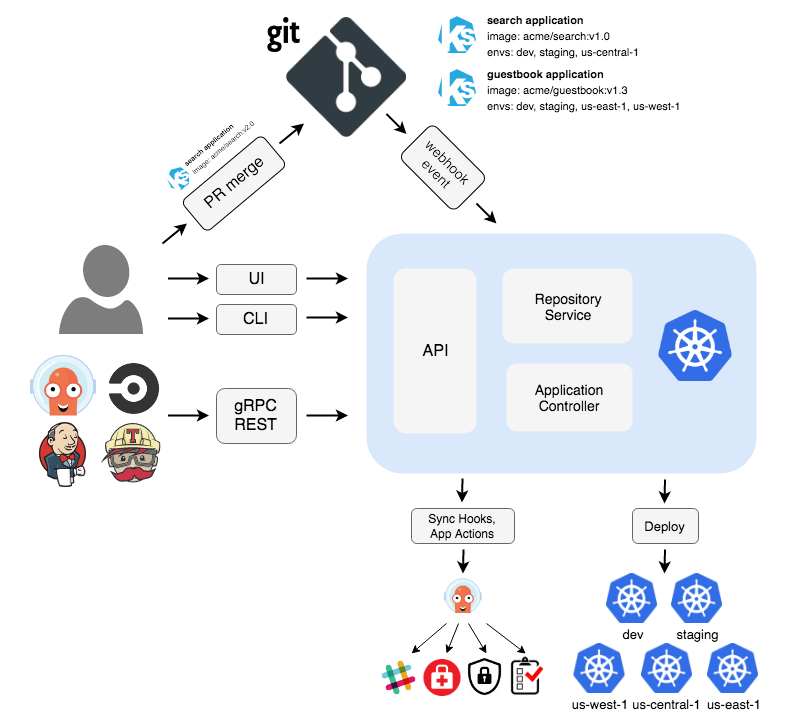 어려운 말로 설명했지만 쉽게 설명하면 git 저장소로 yaml 파일을 관리하고 설정에 따라 새로운 commit 발생하면 자동으로 배포하는 도구입니다.(자동/수동 배포 방식은 선택 사항)
