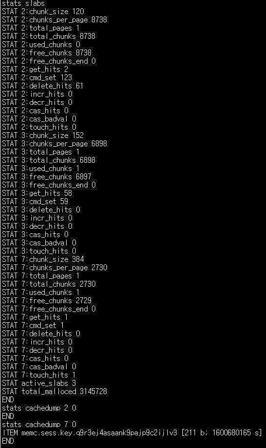 stats cachedump slab넘버 리스팅할_아이템의_갯수