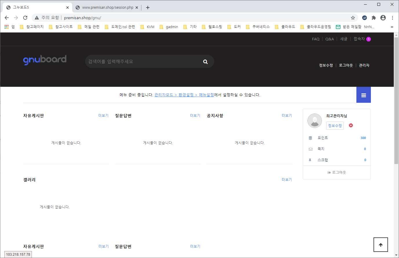또한 그누보드에서도 로그인 창이 계속 나타나는 현상이 확인되지 않고 정상적으로 로그인되는 것을 확인할 수 있습니다.