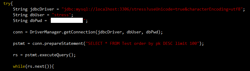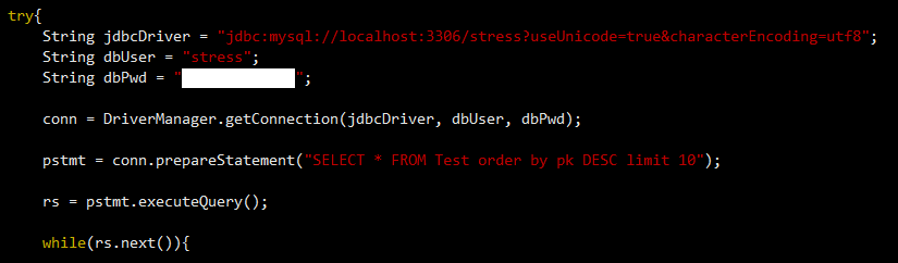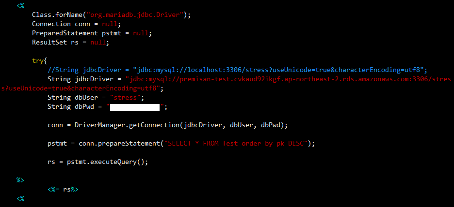 또한 DB로부터 받아온 쿼리의 결과를 while 문을 통해 반복하여 테이블로 표시하는데, 쿼리의 결과를 받아오기만 하고 테이블로 표시하지 않도록 하는 경우에도 TPS의 변화가 어느정도 나타났습니다.(테스트 결과 5번/16번 비교)