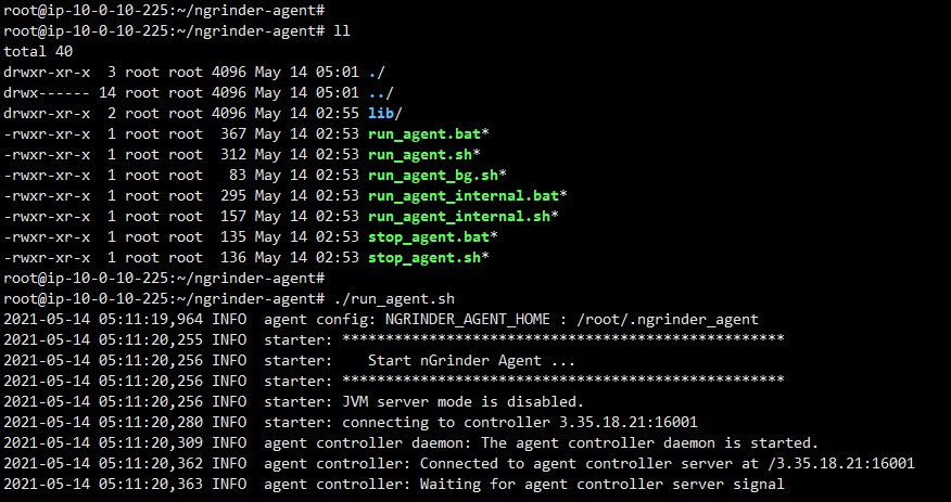 이제 컨트롤러 혹은 별도 부하 발생용 호스트에서 압축을 해제하고 run_agent.sh 파일을 실행합니다. 만약 에러가 발생한다면 에러 내용 및 방화벽 등을 확인합니다.