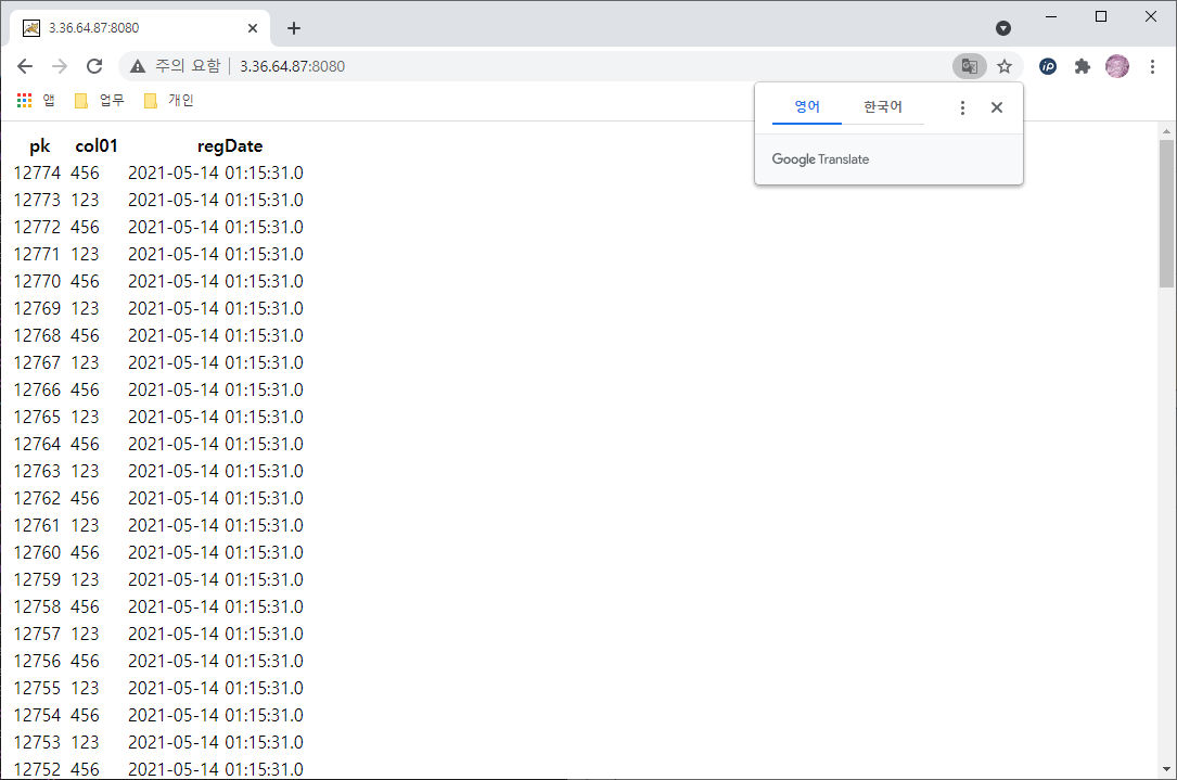 DB를 연동한 페이지의 경우 전체 약 12,000개의 레코드 중 결과로 표시한 레코드의 수를 달리하였습니다.