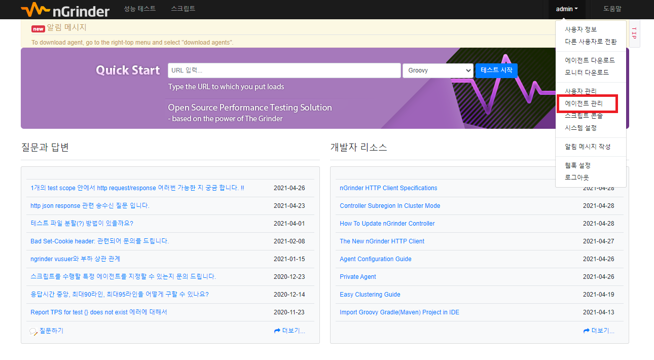 에이전트 - 테스트 간 실제 부하를 발생 시키는 역할의 호스트2. ngrinder 컨트롤러 다운로드/실행