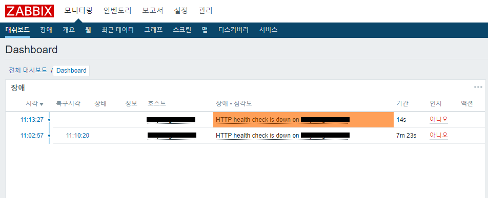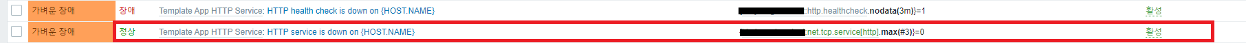 위의 두 경우 모두 자빅스 서버에서는 정상적인 상태로 인식합니다.