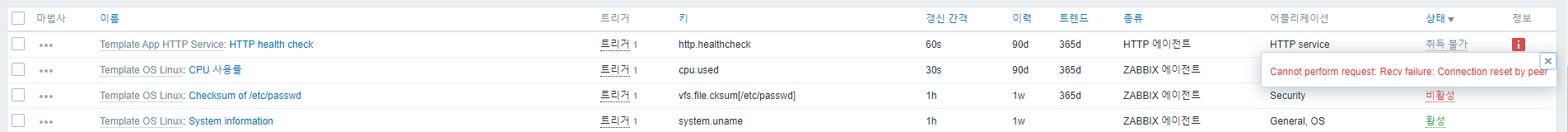 (참고) zabbix 취득불가 아이템의 갱신간격