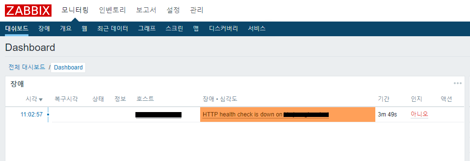 먼저 기존 "HTTP service is running" 아이템으로는 체크가 되지 않았던 500 에러가 발생한 경우입니다.