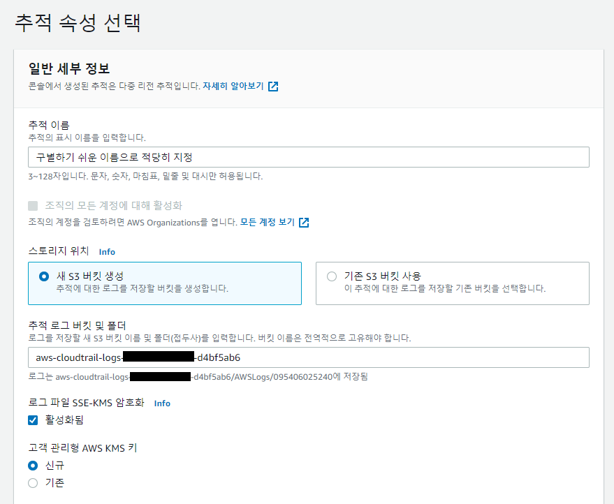 1) Cloudtrail 추적 생성