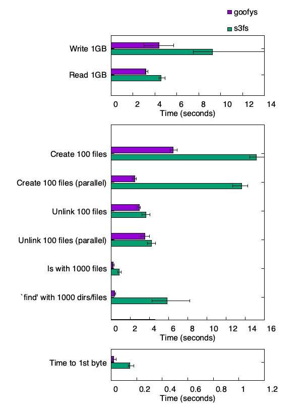 아래는 goofys 와 동일하게 S3 버킷을 파일시스템으로 마운트하는 툴인 s3fs와 읽기/쓰기를 비교한 것이라고 합니다.